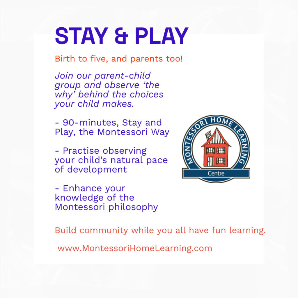 And so we have created that space; a prepared Stay and Play environment for you to join your child, the Montessori Way.